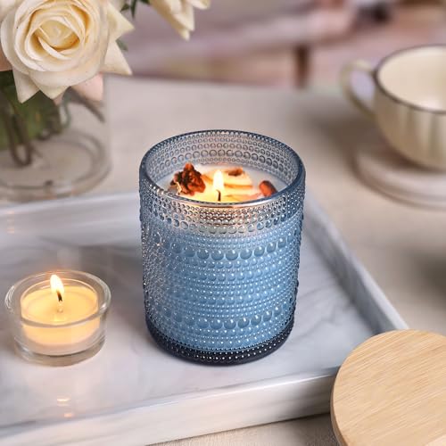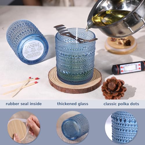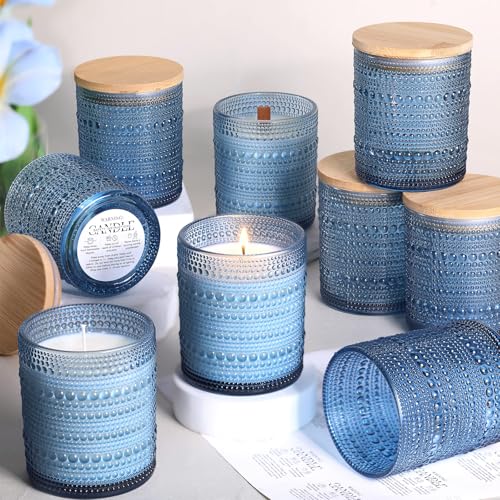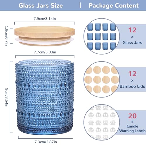 12 Pack Blue Candle Jars for Making Candles- 8 OZ Empty Glass Candle Making Jars with Bamboo Lids and Labels, Candle Making Supplies Candle Containers for DIY Gifts