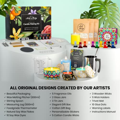 ASH & HARRY (USA Based Company Premium Soy Candle Making Kit – Full Set – Big Glass Jars & Tins Soy Wax for Candle Making – DIY Starter Candles Making Kits for Adults – Scented Candle Maker Supplies