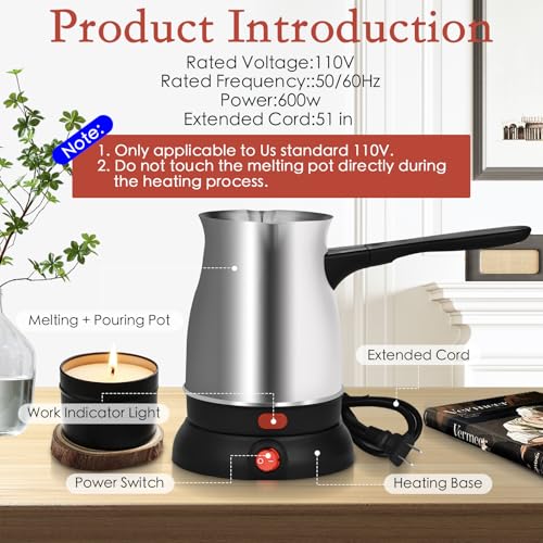 Crafting Convenience:With a large 21 oz capacity, our product melts larger quantities of wax at a time, perfect for handling candle making tasks.The 600w Candle Melting Wax Pot increases the speed of wax melting and the stainless steel material is sturdy and durable making it an ideal gift for wife, friends and candle lovers