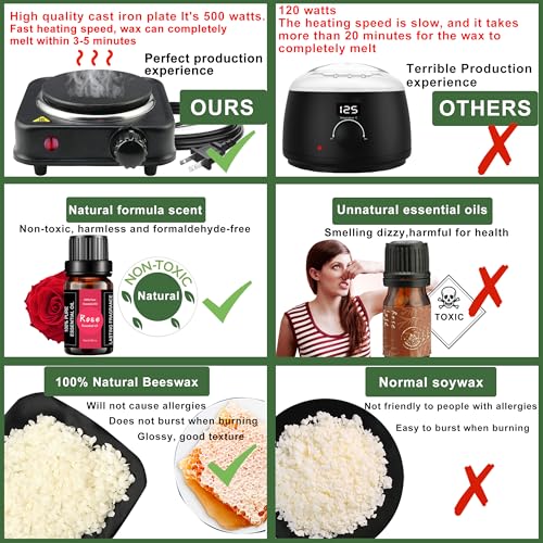 Complete Candle Making Kit With Wax Melter, Candle Making Supplies, Diy Arts&Crafts Kits Gift For Adults,Beginners,Including Soy Wax,Electric Stove,Wicks,Rich Scents,Rubber Pads,Wick Clips,Spoon, Etc.