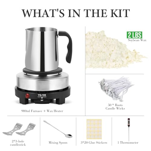 SAEUYVB Candle Making Kit with Wax Melter, Candle Wax for Candle Making – DIY Candle Making Supplies, Including 2lbs Soy Wax Flakes, Melting Pot, Electric Stove,Candle Kit for Adults, Beginnner