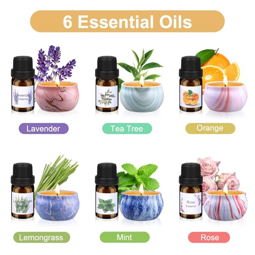 💡️Make Colorful Scented Candles: The candle making kit for adults contains 6 essential oils: Rose, Orange, Lavender, Lemongrass, Mint and Tea Tree and 8 dyes: 2*Yellow, 2*Red, 2*Purple and 2*Blue. Use your imagination to combine them with each other to create wonderful candles. Suitable for spa, relaxation, yoga, massage, sleep and home decoration.