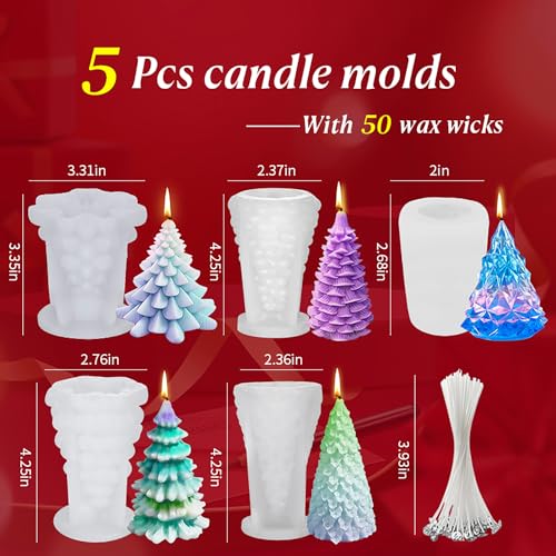 5PCS 3D Christmas Tree Silicone Candle Soap Epoxy Resin Wax Mold Silicone Shapes Christmas Tree Mold for Candle Resin Soap Craft Cake Chocolate Making Kit Christmas Gift Home Party Decoration