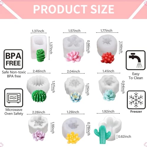 MEIXINZHI 9 Pack Candle Molds, Candle Making Molds, 3D Silicone Candle Mold Flower Cactus Plant Wax Molds for Scented Candles Soaps Making, Resin Crafts Casting, Cake Dessert Mousse Aroma Decoration