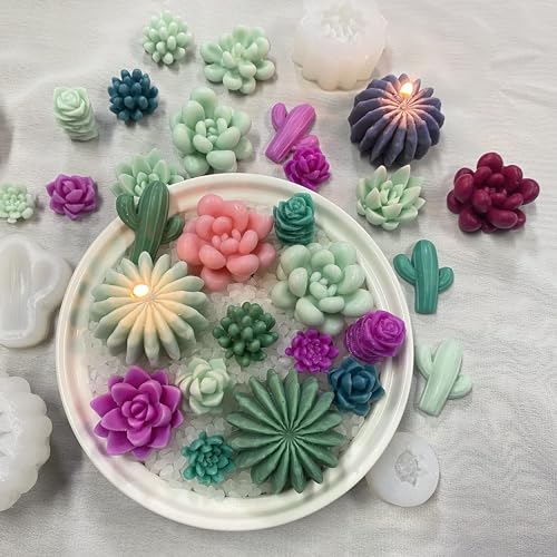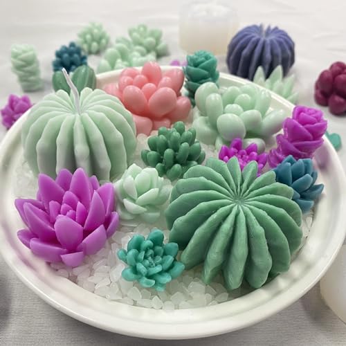 🌵 Unique Succulent Mold: Elevate your wax molds for candle making game with our high-quality succulent scented candle molds. Featuring 9 distinct and stylish patterns with intricate detailing, our molds create stunning 3D relief candles and wax melts. The silicone molds have flat bottoms, ensuring better results every time. Create a fresh and inviting ambiance in your home or office with the delightful and visually striking succulent designs.
