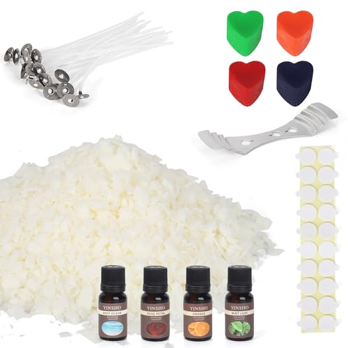 Soy Wax for Candle Making with Candle Wax Scents and Dye for Adults, 2 lbs Natural Wax Flakes to Make Candles, 4 Dye Blocks, 4 Fragrance, 20 Wicks, 20 Wick Stickers and Centering Devices