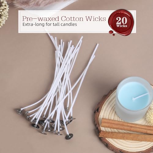 【Get Everything You Need】Our candle making kit for beginners also includes 20 pure cotton candle wicks that are 5.1 inches long and feature sturdy bases. The 20 candle wick stickers are highly adhesive and the burning process is clean and without black smoke. 1 metal wick centering device helps position the wick in the candle container. Get everything you need in one place and start making your own candles now!