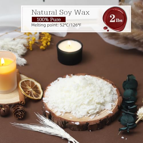【2lbs 100% Natural Soy Wax to Make Candles】Our premium soy wax is rich and creamy and made from sustainable, plant-based materials. This makes our soy wax flakes burn cleaner, smell better and be less prone to clumping. Unlike artificial waxes such as paraffin wax and jelly wax, soy wax does not contain harsh chemicals and additives. Perfect for use during meditation and rest.