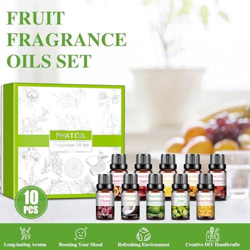PHATOIL Fragrance Oil Set: This fruity fragrance oil with a long lasting scent that pampers all your senses. Suitable for any place; For example: office, living room, kitchen, car, yoga studio, etc.