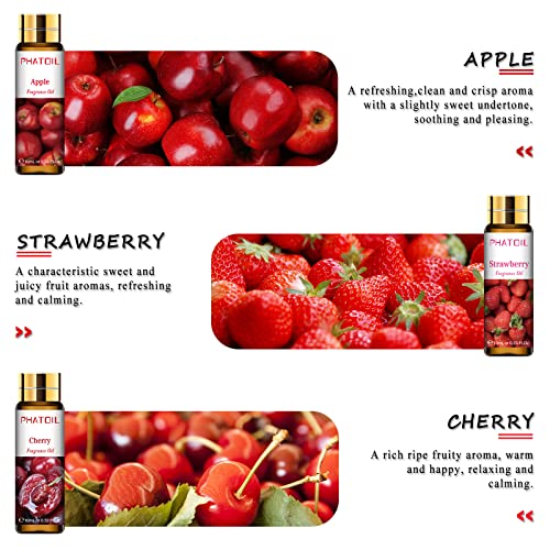 Wide Range of Uses — Except to be used in aromatherapy diffusers, PHATOIL fruity fragrance oils set is also great for making soaps, creams, candles and so much more! You can use one kind of fragrance oil one time or you can DIY the fragrance oils you want.