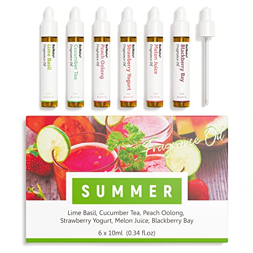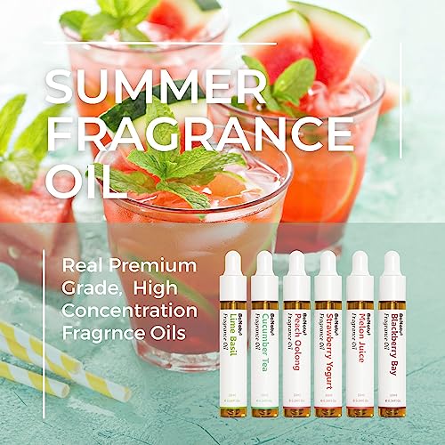 Benatu Summer Premium Fragrance Oils Set for Diffuser, Candle, Soap Making – Fruity Scents Aromatherapy Perfume Oil Gift for Home (Lime Basil, Cucumber, Peach, Strawberry, Melon, Blackberry Bay) 6 Pcs