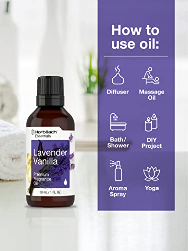 Horbäach Lavender Vanilla Fragrance Oil | 1 fl oz (30ml) | Premium Grade | for Diffusers, Candle and Soap Making, DIY Projects & More
