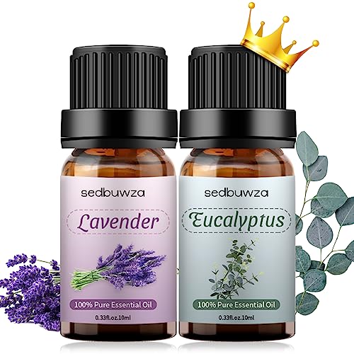 Sedbuwza Lavender Eucalyptus Essential Oil Set, Lavender Fragrance Oil Eucalyptus Scent Oil Set for Diffuser, Aromatherapy, Massage, Soap, Candle Making 2 x 10 ml
