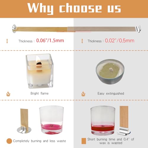 [2024 Thickness upgrade] – These wood wicks are up to 0.06 inches thick, triple that of other brand wicks. You can get a perfect flame with one piece of wooden wick and don’t need to worry about split ends by inserting two wood wicks.