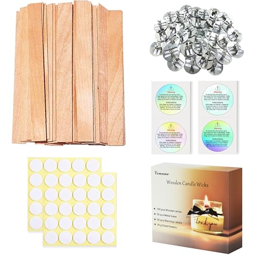 [Great for candle-making or gift] – The exquisite gift box includes 50 wooden candle wicks with metal bases, 50 candle wick stickers, and 50 candle wick warning labels.