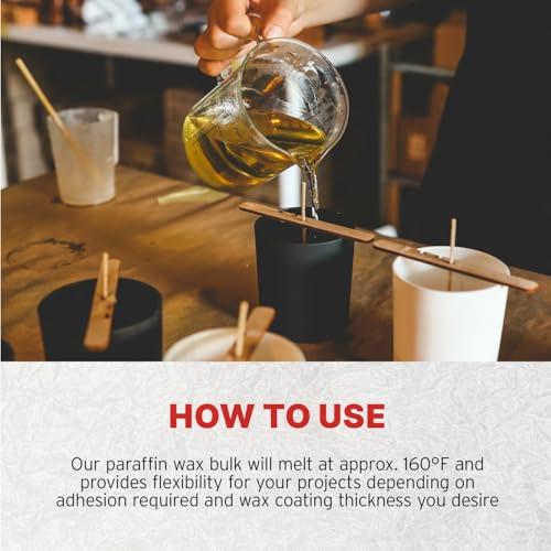 How to Use: Our paraffin wax bulk will melt at approx. 160°F and provides flexibility for your projects depending on adhesion required and wax coating thickness you desire