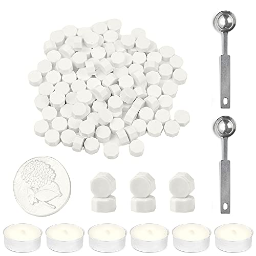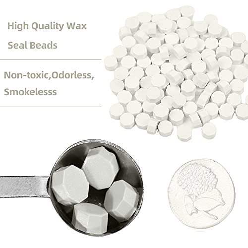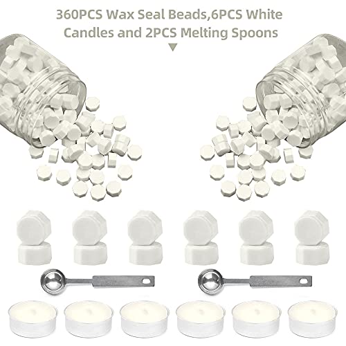 Wax Seal Beads, Afobby 360 PCS Sealing Wax Beads with 2PCS Wax Seal Melting Spoons and 6 Candles for Wax Stamp Sealing, Sealing Beads for Making Wedding and Party Invitations (White)
