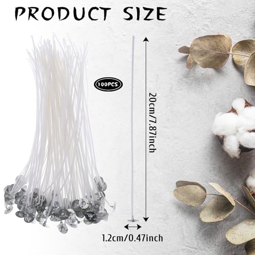 100 PCS Candle Wicks for Candle Making, Cotton Candle Wick 8” Candle Wicks Candle Cotton Wicks Candle Making Supplies Pre-Waxed for Candle Making,Candle DIY, Thick Candle Wick with Base