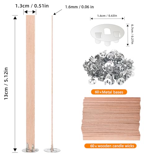 βœ¨γ€π‘Ύπ’‰π’‚π’•’𝒔 π’Šπ’ 𝑩𝒐𝒙】Our wooden candle wicks set includes 60 natural wood candle wicks and 60 metal bases.