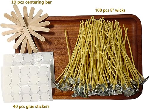 【Hemp Candle Wick Kit】The candle wicks kit contains 100pcs 8 inch candle wicks, 10 pcs Wicks Centering Device, 100 pcs Candle Wick Stickers. Don’t need to buy extra supplies for your candles making project. Now start making a candle for your room!