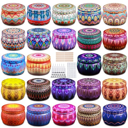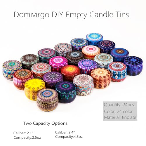Domivirgo Candle Tins with Lid, 4.5oz 24 Designs Tinplate Cans with Wicks, Wick Holders, Wick Stickers for Candle Making, DIY Arts and Crafts, Small Item Storage (4.5, Ounces)
