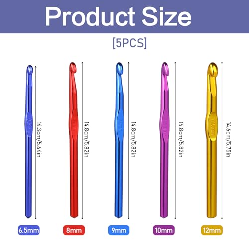 Lightweight and Versatile: Boasting smooth ends and impeccable craftsmanship, these aluminum crochet hooks provide lightweight comfort and practicality. The set of 5 metal crochet hooks offers a diverse range of specifications, making them a swift and effective solution for all your crocheting needs.