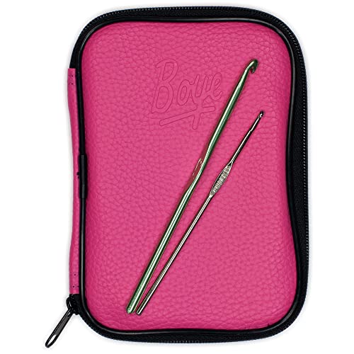 Whether you’re a novice or an experienced crocheter, this versatile assortment of hooks in this aluminum and steel crochet hook set allows you to make a wide range of creative projects. Featuring high-grade lightweight construction, the hooks feature rounded heads to prevent snagging and splitting. Sizes are marked on each hook for easy identification. Boye crochet hook set comes with (16) steel crochet hooks, (8) aluminum crochet hooks, and (1) 5″ x 7″ carrying case. Steel hook sizes: 00 (3.5mm), 0 (3.25mm), 1 (2.75mm), 2 (2.5mm), 3 (2.1mm), 4 (2mm), 5 (1.9mm), 6 (1.8mm), 7 (1.65mm), 8 (1.5mm), 9 (1.4mm), 10 (1.3mm), 11 (1.1mm), 12 (1mm), 13 (0.85mm), and 14 (0.75mm). Aluminum hook sizes: D (3.25mm), E (3.5mm), F (3.75mm), G (4.25mm), H (5mm), I (5.25mm), J (5.75mm), K (6.5mm).