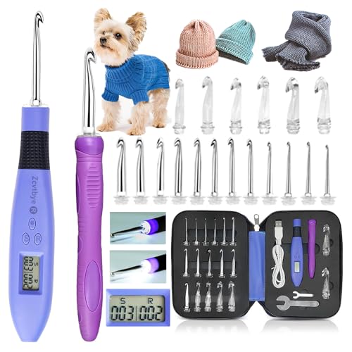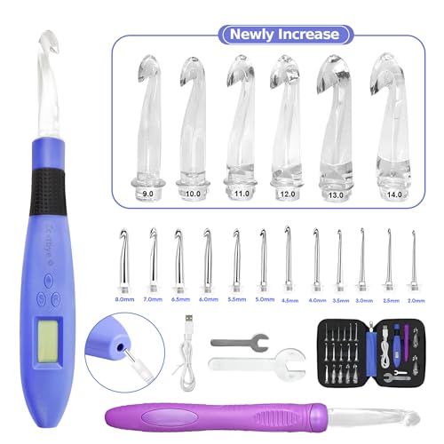 Zcvtbye 18 Size Counting Crochet Hooks Set, Light Up Crochet Hooks for Stitch & Row Counter, Lighted Crochet Needles Kit with Case