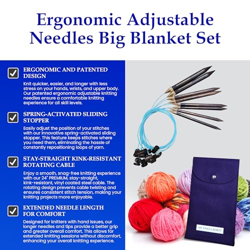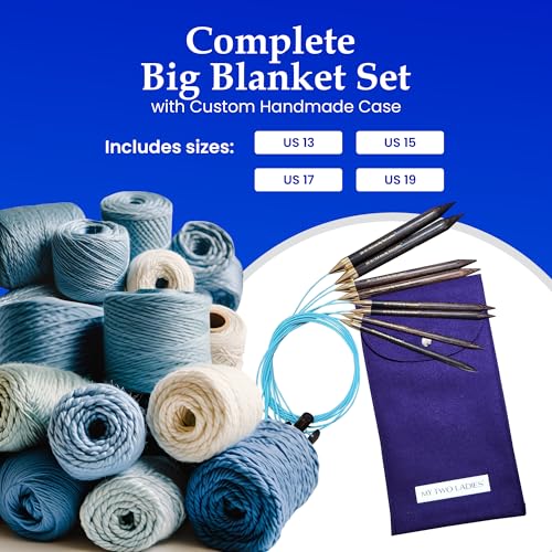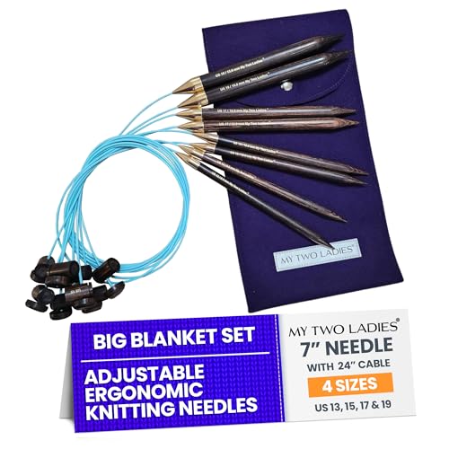 My Two Ladies Blue Silk Adjustable Ergonomic Knitting Needles & Case – 7″ Wooden Knitting Needle, 24″ Kink-Resistant Rotating Cable for Holiday Knit Big Blanket Bundle – 4 Sizes – US13 US15 US17 US19