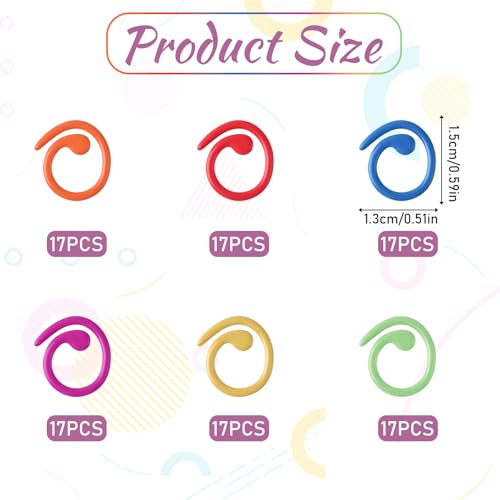 【Value Pack】Contains 102 pieces of colorful crochet stitch markers, mixed delivery in 6 colors, 17 pcs each color, crochet markers ring is sufficient quantity to meet your daily use and replacement needs