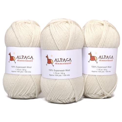 100% Pure Wool Yarn Superwash Set of 3 Skeins (150 Grams) DK Weight – Sourced Directly from Peru – Heavenly Soft and Perfect for Knitting and Crocheting (Alabaster White)