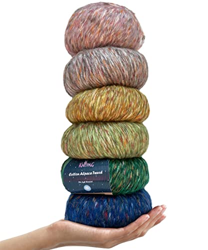 Cotton Alpaca Tweed, 3 DK, Light Worsted Yarn, Assorted Variety Craft Pack of 6 (882yds/300g), Super Soft Fluffy Blend for Knitting, Crocheting, Loom and Weaving (Forest Pack)