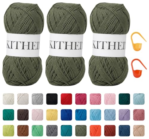 Cotton Yarn,10.5oz,526yard,3 Pack ,Soft Yarn for Crocheting and Knitting (38 Army Green)