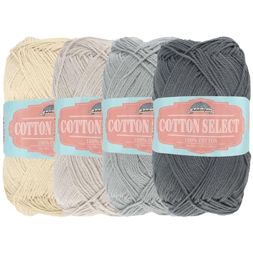 JubileeYarn Cotton Select Yarn – Sport Weight – 50g/Skein – Shades of Grey – 4 Skeins