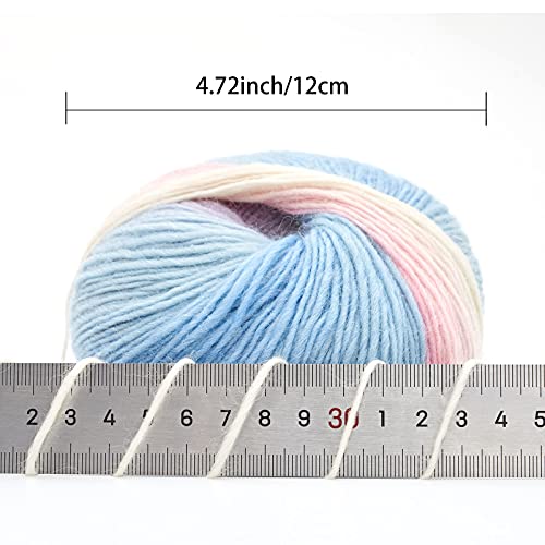 NICEEC 2 Skeins Rainbow Soft Yarn 100% Wool Gradient Multi Color Yarn for Crocheting Knit Total Length 180m×2(196yds×2,50g×2)-21#