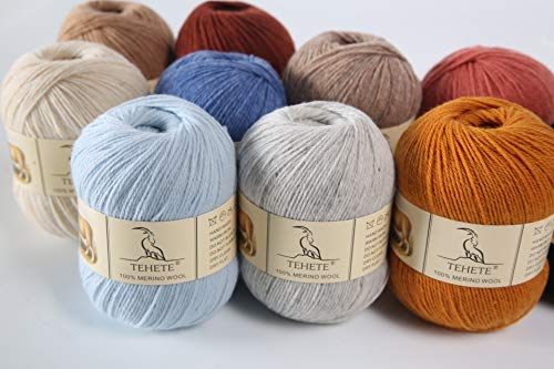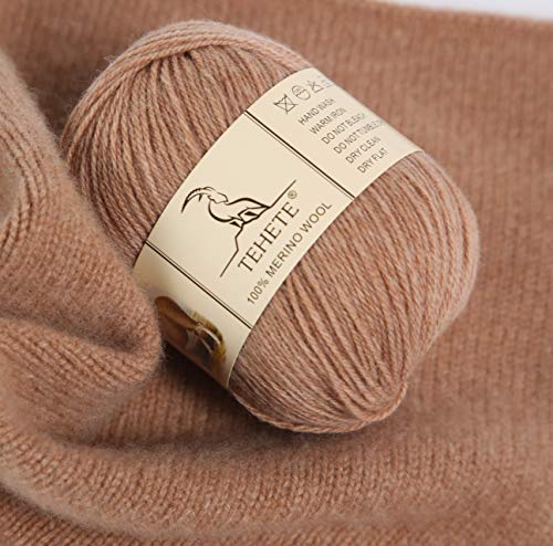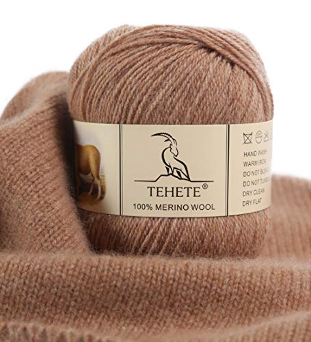 TEHETE 100% Merino Wool Yarn for Knitting 3-Ply Luxury Warm Soft Lightweight Crochet Yarn (Khaki)