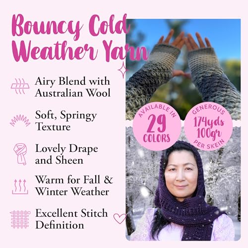 SOFT, SPRINGY WOOL: Woolen Delights’ fiber blend creates warm wool knits with lovely drape, light bounce, a soft sheen, and excellent stitch definition—perfect for fall and winter sweaters, scarves, hats, and other accessories.