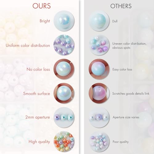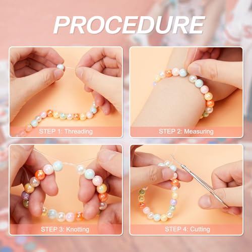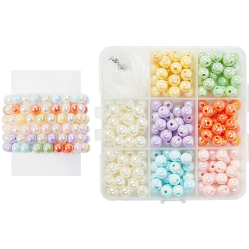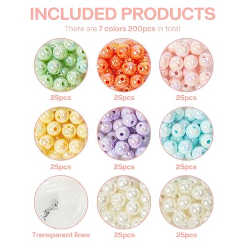 【200 Pcs Round Beads】There are 200 pcs of acrylic pearl beads in a box with thread. You can make 4-5 craft bracelets or combine complementary colors to make fashion style of necklaces with this necklace beads with different colors to express your friendship, love, and affection