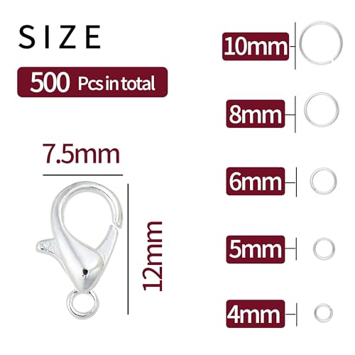 Sufficient Quantity: The jump ring set includes a total of 500 gold and silver jump rings with lobster clasps, which is plenty, making it the perfect choice for your homemade bracelets and jewelry!