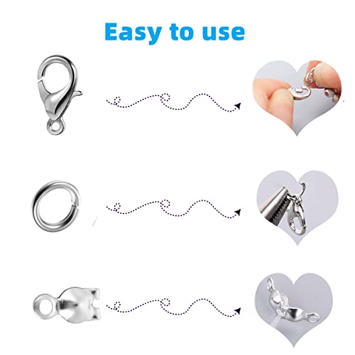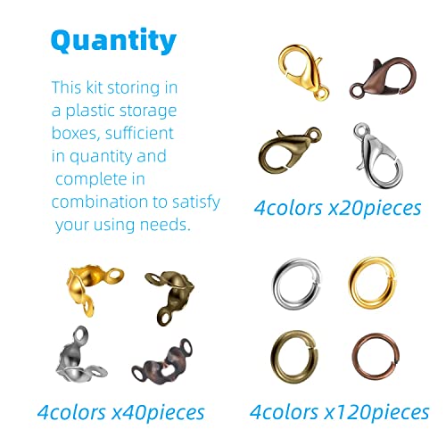 【Jewelry DIY Supplies Kit】You will get one package include 720 pcs DIY Jewelry Making Kit, 80pcs lobster claw clasps, 160pcs open bead tips knot covers, 480pcs open jump ring connectors