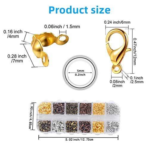 Olylkx 720pcs Lobster Claw Clasps, Bead Tips Knot Covers, Open Jump Ring Connectors, Jewelry Making Accessories Set (12 Styles)