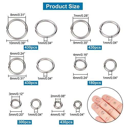 PH PandaHall 1000pcs 304 Stainless Steel Jump Rings, 18-Gauge Open Jump Ring 4/5/6/8/9/10mm Connector Rings O Ring Chainmail Rings for Earring Bracelet Necklace Jewelry Keychain DIY Craft Making