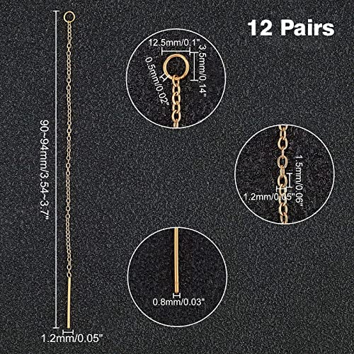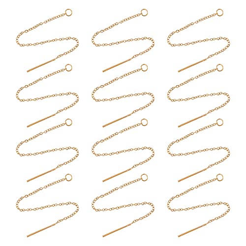 UNICRAFTALE 24pcs About 90mm Golden Ear Threads Hypoallergenic Stainless Steel Ear Threads Earring Threader with Loop for Jewelry Earring Making 0.8mm Pin