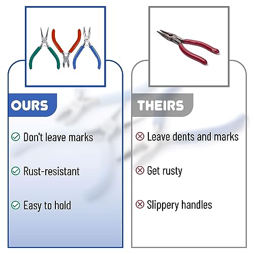 📢 There might be some oil on the head or handle of the jewelry pliers you receive. This may look the pliers are dirty, but In order to prevent rusting the pliers are coated with oil. Please wipe them before use. Also before storing please apply oil to them to avert rusting