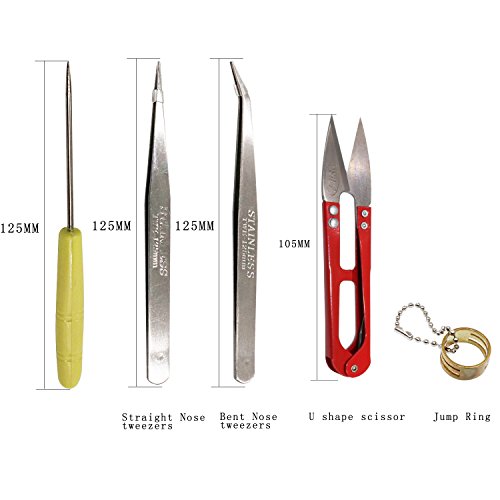 5.As the picture show: Round Nose Pliers,Side Cutting Pliers,Wire Cutter, Scissor,Beading Tweezers,Hook Pulling Needle,Jump Ring Opener are Included.