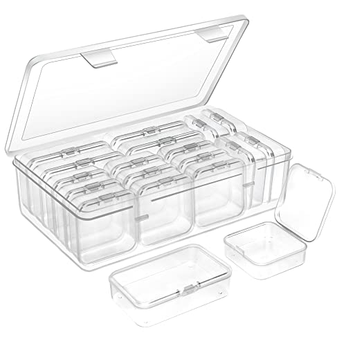 18PCS Small Bead Organizers, Two Sizes Clear Plastic Storage Containers Box with Hinged Lids, Mini Storage Cases for Beads, Craft, Jewelry and DIY Art Accessory