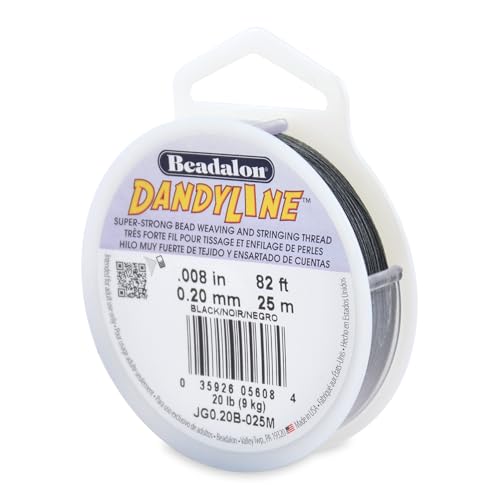 Beadalon Dandyline Bead Weaving & Stringing Thread, 0.20 mm / .008 in, Black, 25 m
