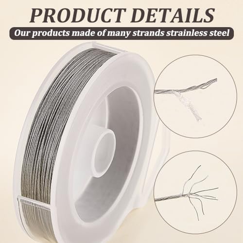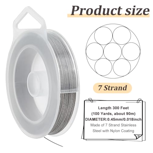 BENECREAT 300-Feet 7-Strand Beading Wire, 0.018inch/ 0.46mm Tiger Tail Bead Stringing Wire for Jewelry Making Threading Necklace Bracelet Crafts