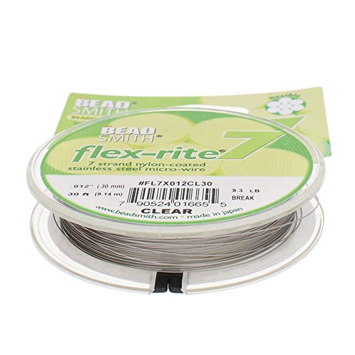 The Beadsmith Flex-Rite 7 Strand Nylon Coated, Stainless-Steel Beading Wire, Jewelry Making Supply (.012 Dia, Clear – 30 Ft)