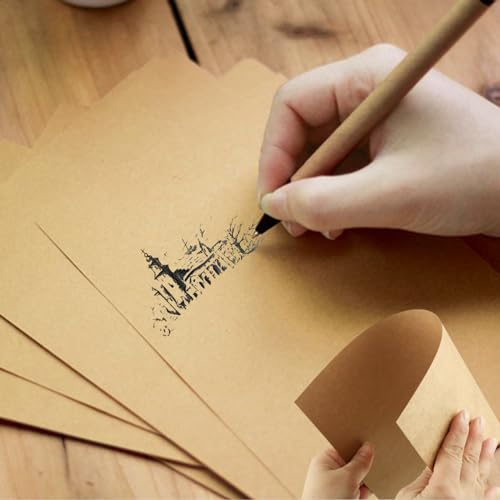 ❤️ [PAPER DIMENSION]: Each pack includes 50 sheets of brown craft cardstock, measuring 5.5 x 8.5 inches and weighing 250 grams. They are double-sided, perfect for writing, drawing, and painting. Compatible with felt-tip markers!